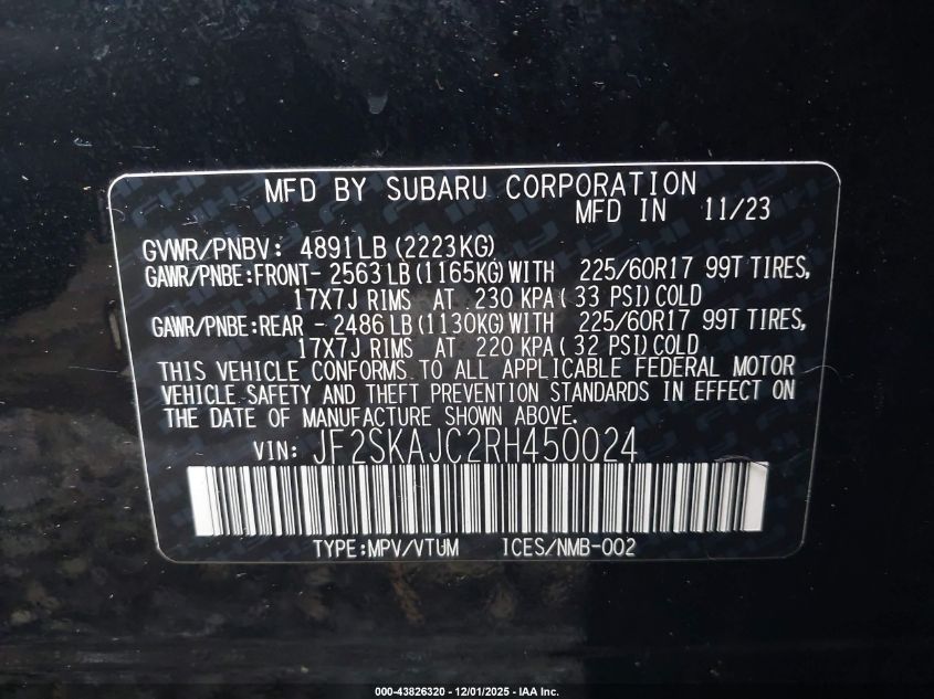 2024 SUBARU FORESTER 2024 року Бензин, 2.5, Повний привід, vin - JF2SKAJC2RH450024 з США