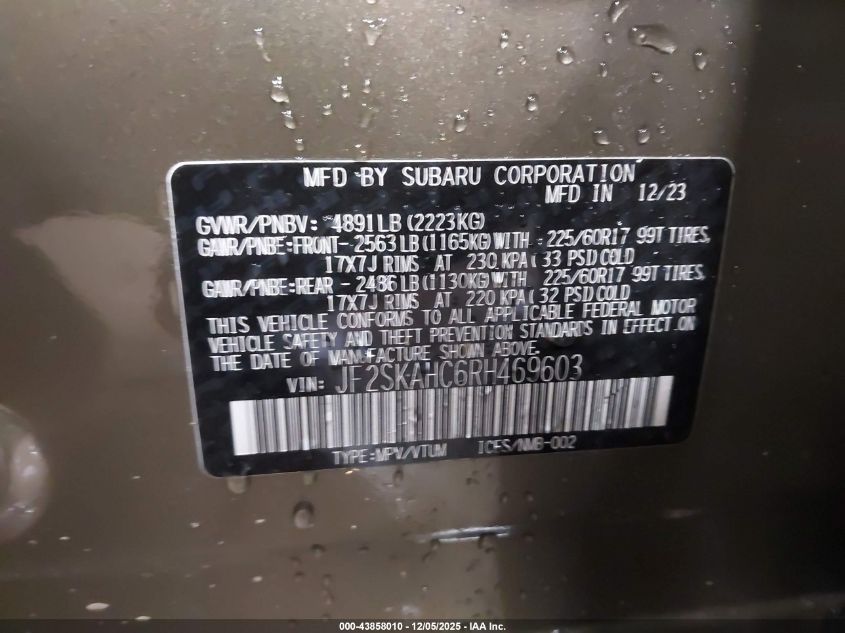 2024 SUBARU FORESTER 2024 року Бензин, 2.5, Повний привід, vin - JF2SKAHC6RH469603 з США