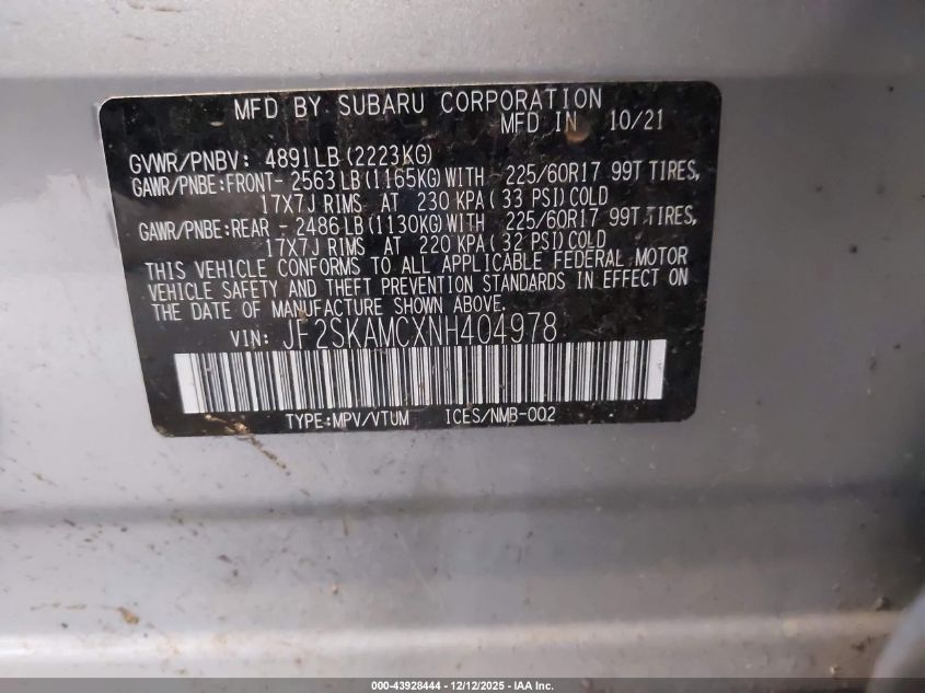 Колір СрібнийЦиліндри 4Привід Повний привідVIN JF2SKAMCXNH404978Стан Заводиться та їде (перевірено)Ушкодження Права сторона AutoRIA