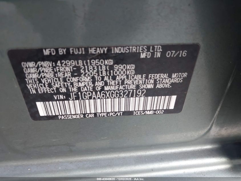 2016 SUBARU IMPREZA 2016 року Бензин, 2.0, Повний привід, vin - JF1GPAA6XGG327192 з США