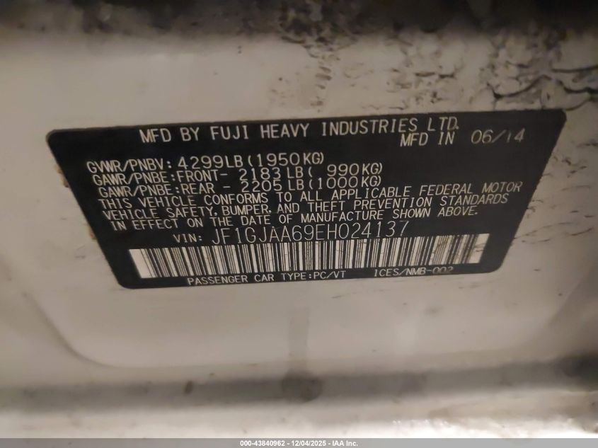 2014 SUBARU IMPREZA 2014 року Бензин, 2.0, Повний привід, vin - JF1GJAA69EH024137 з США
