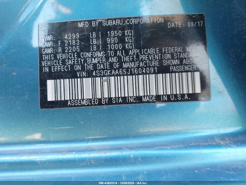 2018 SUBARU IMPREZA 2018 року Бензин, 2.0, Повний привід, vin - 4S3GKAA65J1604091 з США