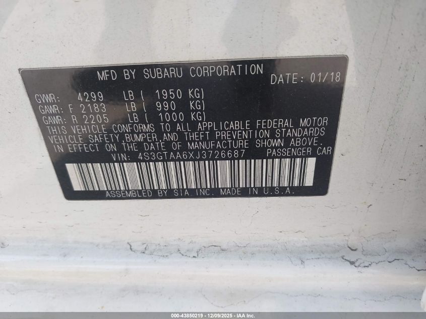 2018 SUBARU IMPREZA 2018 року Бензин, 2.0, Повний привід, vin - 4S3GTAA6XJ3726687 з США