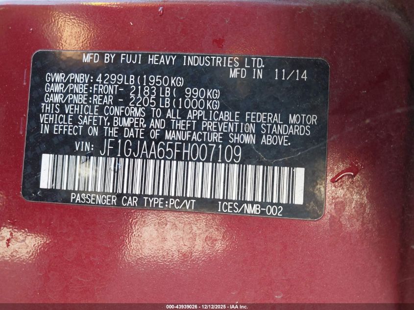 2015 SUBARU IMPREZA 2015 року Бензин, 2.0, Повний привід, vin - JF1GJAA65FH007109 з США