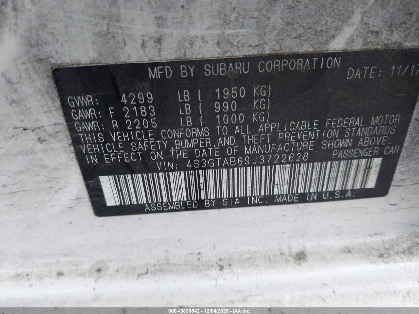 2018 SUBARU IMPREZA 2018 року Бензин, 2.0, Повний привід, vin - 4S3GTAB69J3722628 з США