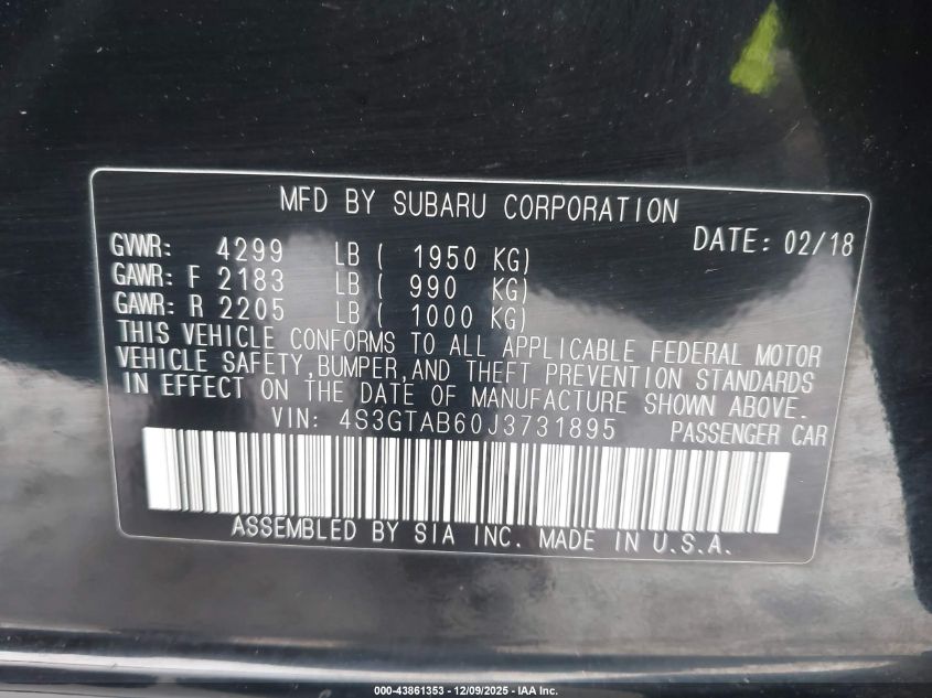 2018 SUBARU IMPREZA 2018 року Бензин, 2.0, Повний привід, vin - 4S3GTAB60J3731895 з США