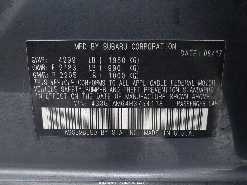 2017 SUBARU IMPREZA 2017 року Бензин, 2.0, Повний привід, vin - 4S3GTAM64H3754118 з США