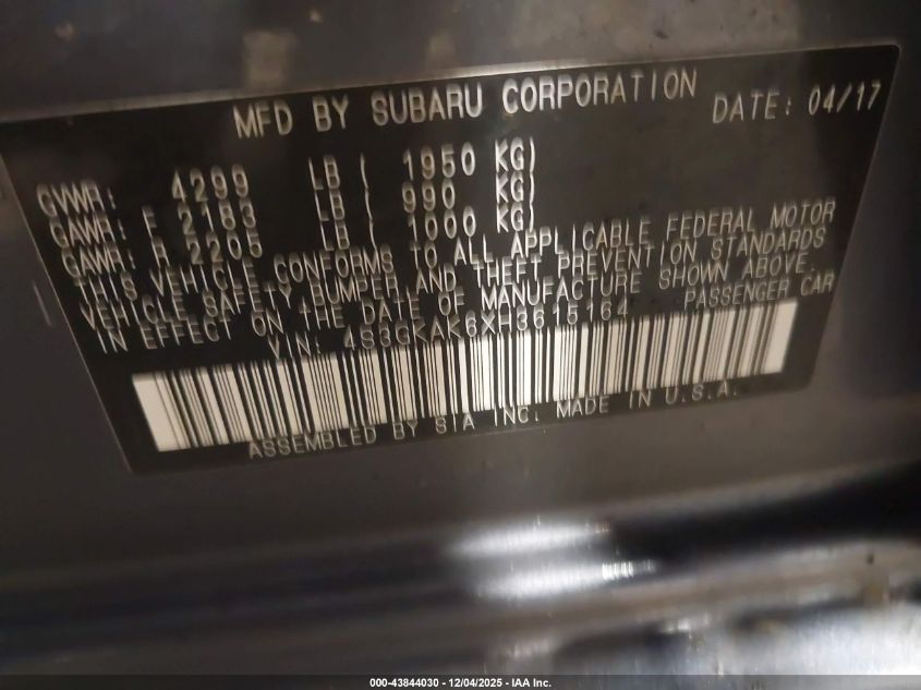 2017 SUBARU IMPREZA 2017 року Бензин, 2.0, Повний привід, vin - 4S3GKAK6XH3615164 з США