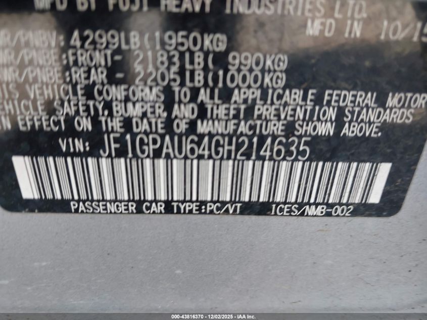 2016 SUBARU IMPREZA 2016 року Бензин, 2.0, Повний привід, vin - JF1GPAU64GH214635 з США