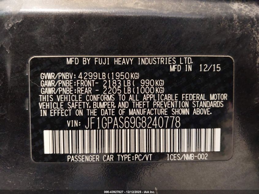 2016 SUBARU IMPREZA 2016 року Бензин, 2.0, Повний привід, vin - JF1GPAS69G8240778 з США