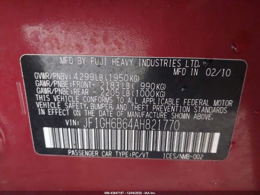 2010 SUBARU IMPREZA 2010 року Бензин, 2.5, Повний привід, vin - JF1GH6B64AH821770 з США