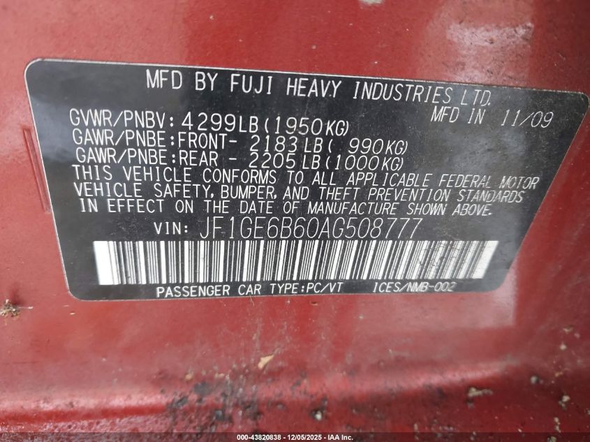 2010 SUBARU IMPREZA 2010 року Бензин, 2.5, Повний привід, vin - JF1GE6B60AG508777 з США
