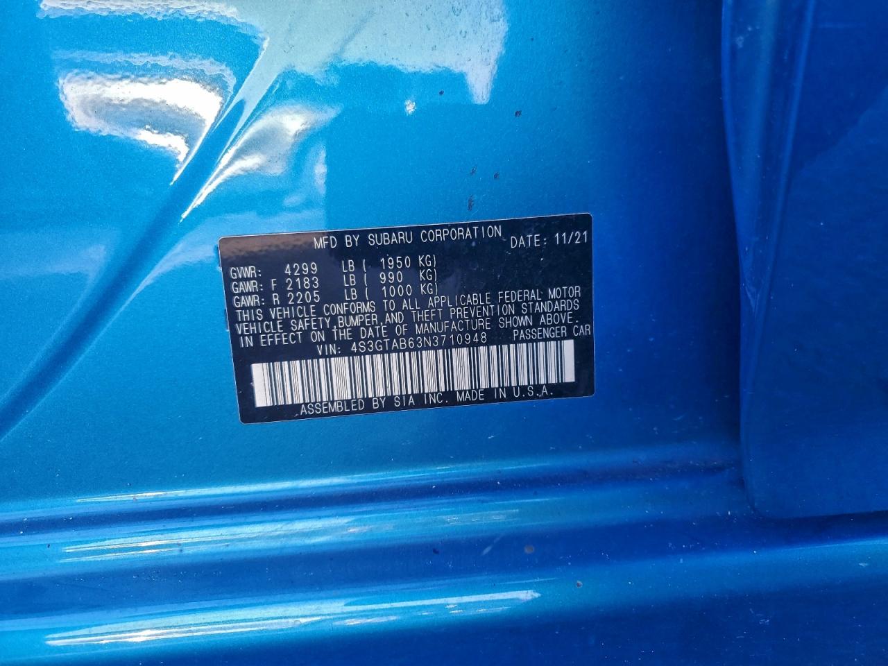 2022 SUBARU IMPREZA 2022 року Бензин, 2.0, Повний привід, vin - 4S3GTAB63N3710948 з США