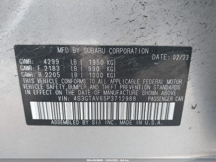 2023 SUBARU IMPREZA 2023 року Бензин, 2.0, Повний привід, vin - 4S3GTAV65P3712988 з США