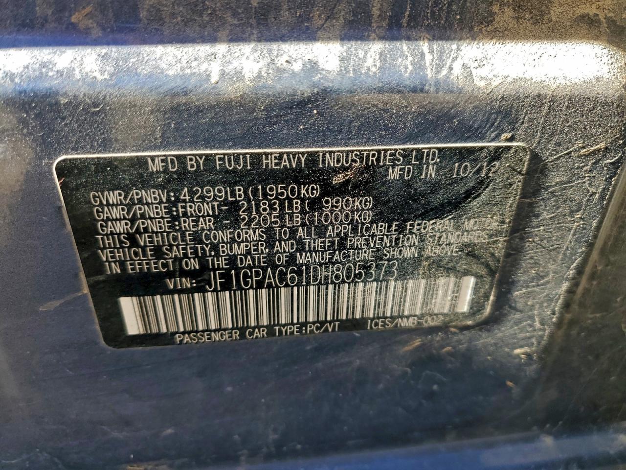 2013 SUBARU IMPREZA 2013 року Бензин, 2.0, Повний привід, vin - JF1GPAC61DH805373 з США