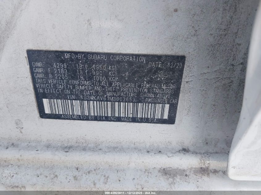 2021 SUBARU IMPREZA 2021 року Бензин, 2.0, Повний привід, vin - 4S3GKAV61M3603653 з США