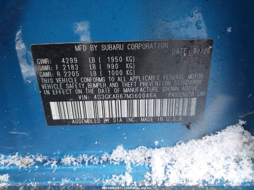 2021 SUBARU IMPREZA 2021 року Бензин, 2.0, Повний привід, vin - 4S3GKAB67M3600468 з США