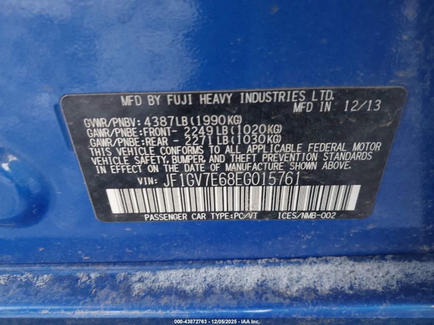 2014 SUBARU IMPREZA WRX 2014 року Бензин, 2.5, Повний привід, vin - JF1GV7E68EG015761 з США