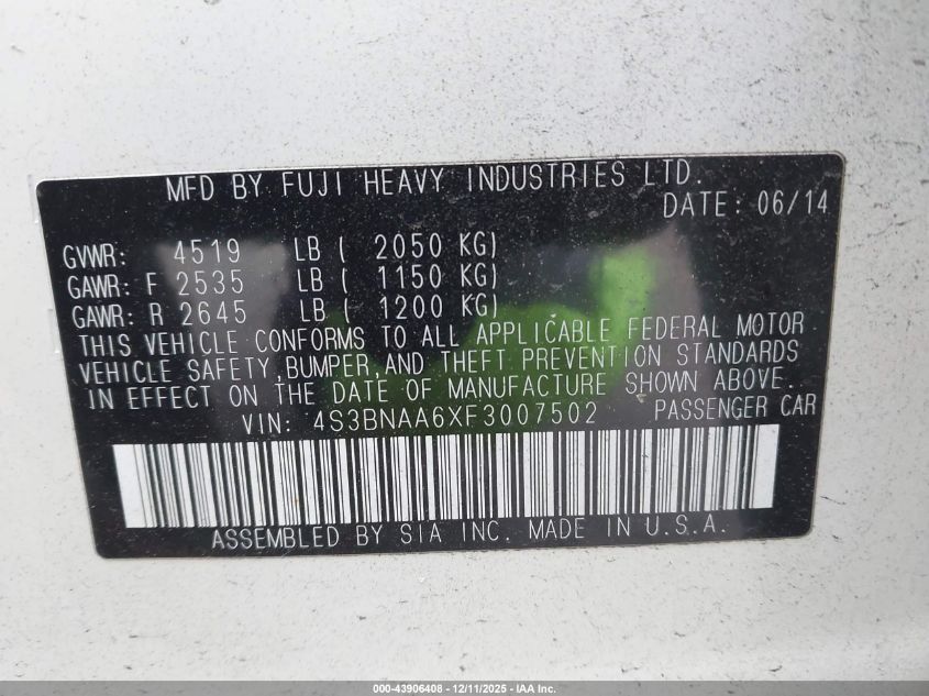 2015 SUBARU LEGACY 2015 року Бензин, 2.5, Повний привід, vin - 4S3BNAA6XF3007502 з США