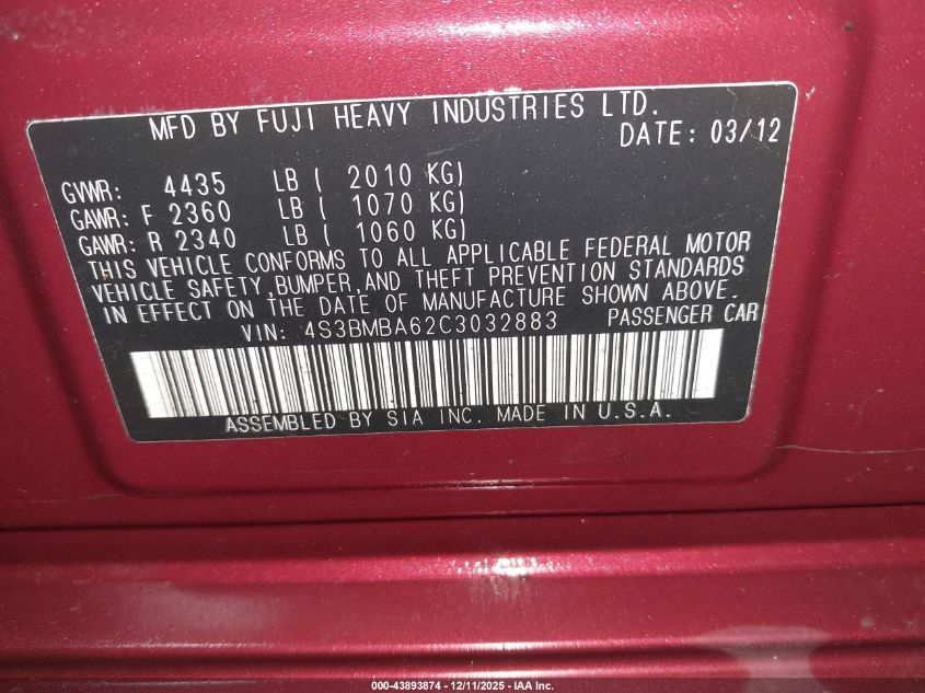 2012 SUBARU LEGACY 2.5I PREMIUM