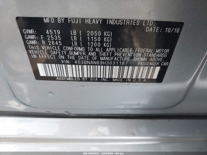 2017 SUBARU LEGACY 2.5I
