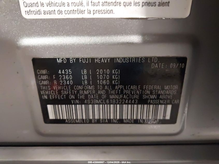 2011 SUBARU LEGACY 2011 року Бензин, 2.5, Повний привід, vin - 4S3BMCL61B3224443 з США