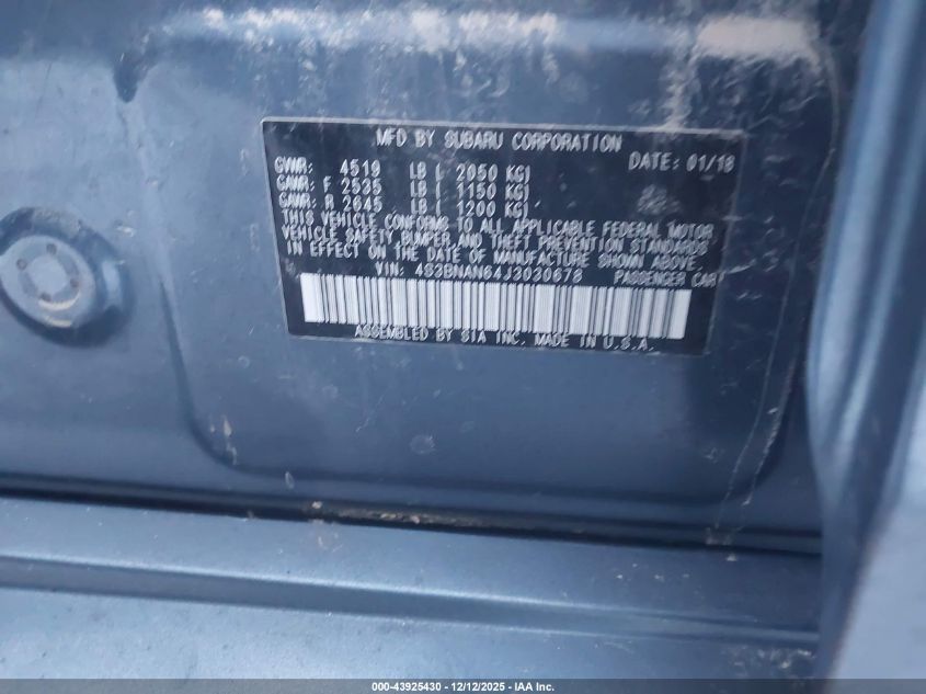 2018 SUBARU LEGACY 2018 року Бензин, 2.5, Повний привід, vin - 4S3BNAN64J3030678 з США