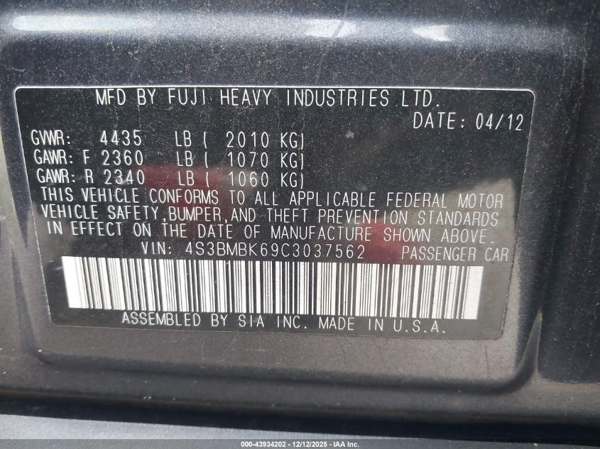 Колір СірийЦиліндри 4Привід Повний привідVIN 4S3BMBK69C3037562Стан Заводиться та їде (перевірено)Ушкодження Передня або задня AutoRIA
