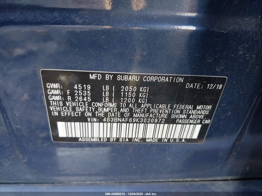 2019 SUBARU LEGACY 2.5I