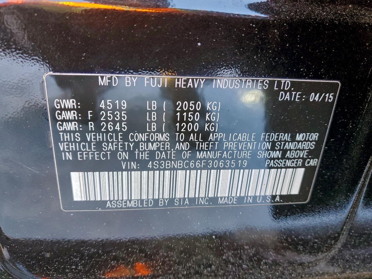 2015 SUBARU LEGACY 2015 року Бензин, 2.5, Повний привід, vin - 4S3BNBC66F3063519 з США