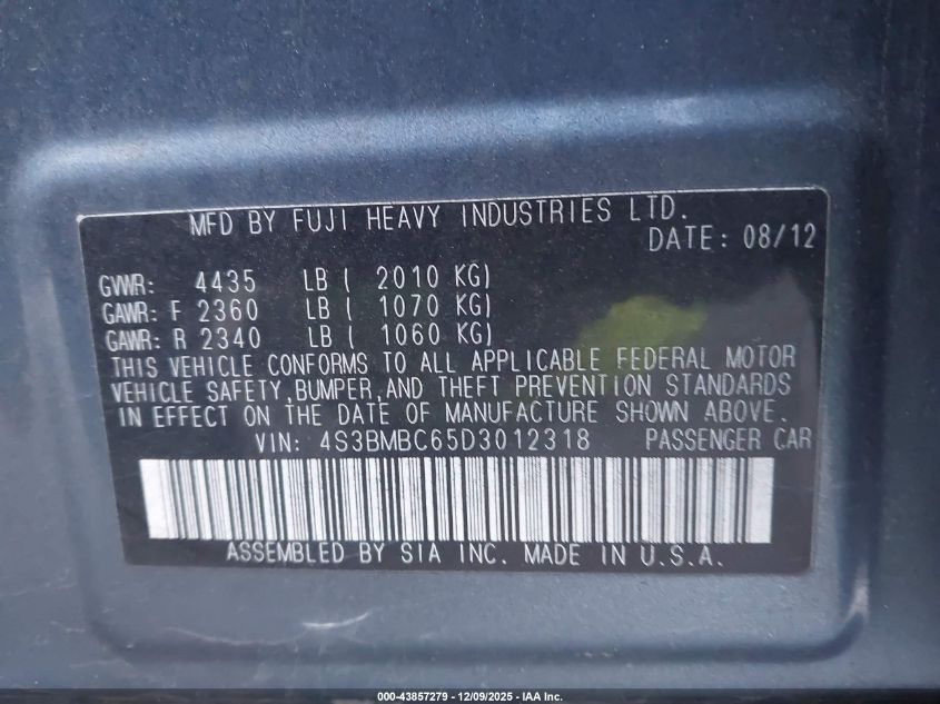 2013 SUBARU LEGACY 2.5I PREMIUM