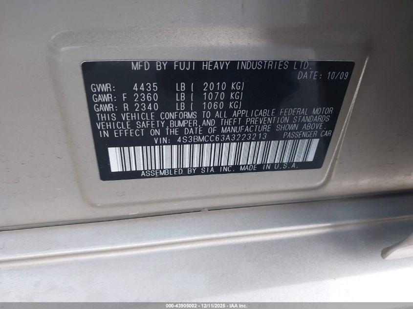 2010 SUBARU LEGACY 2010 року Бензин, 2.5, Повний привід, vin - 4S3BMCC63A3223213 з США