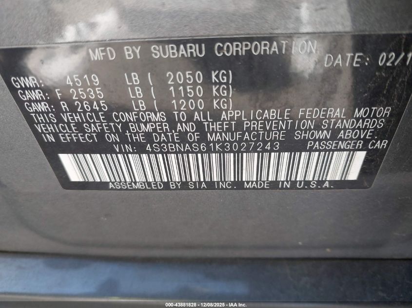 2019 SUBARU LEGACY 2.5I PREMIUM