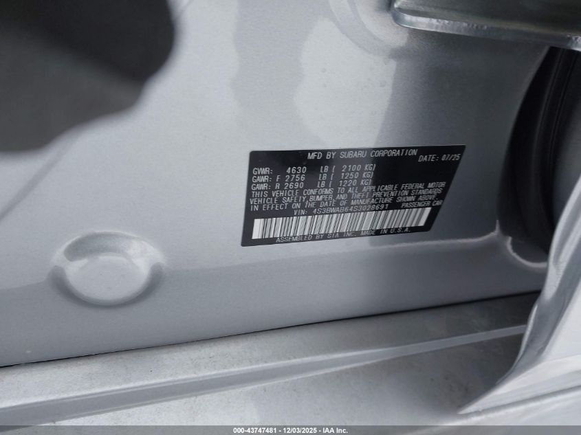 2025 SUBARU LEGACY 2025 року Бензин, 2.5, Повний привід, vin - 4S3BWAB64S3028691 з США
