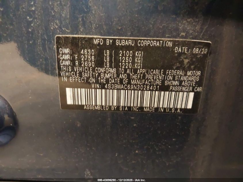 2022 SUBARU LEGACY 2022 року Бензин, 2.5, Повний привід, vin - 4S3BWAC69N3028401 з США