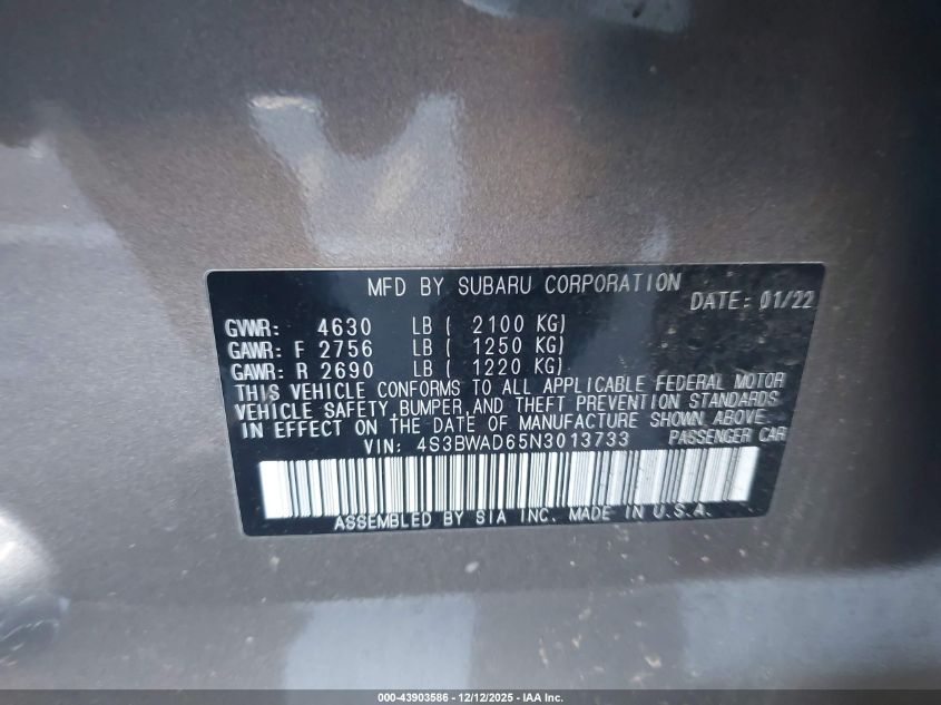 2022 SUBARU LEGACY 2022 року Бензин, 2.5, Повний привід, vin - 4S3BWAD65N3013733 з США