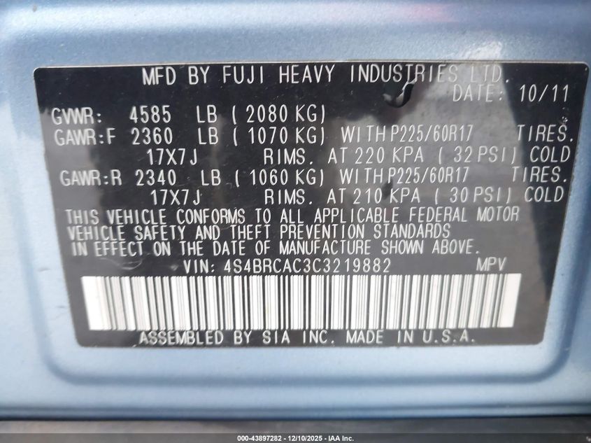 2012 SUBARU OUTBACK 2012 року Бензин, 2.5, Повний привід, vin - 4S4BRCAC3C3219882 з США