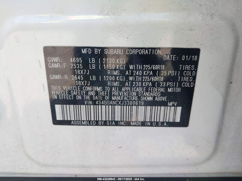 2018 SUBARU OUTBACK 3.6R LIMITED
