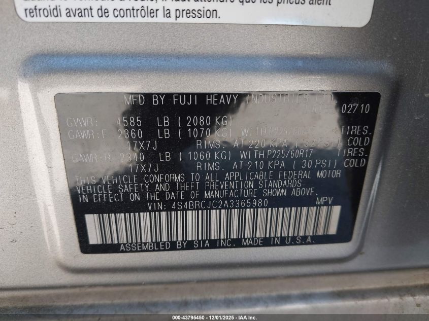 2010 SUBARU OUTBACK 3.6R LIMITED