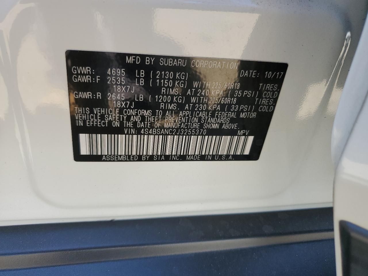 Колір БілийЦиліндри 4Привід Повний привідVIN 4S4BSANC2J3255370Стан ЗаводитьсяУшкодження Передня або задняДата аукціону 2025-12-09 AutoRIA
