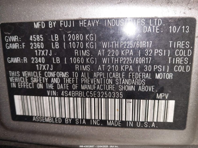 Колір БежевийЦиліндри 4Привід Повний привідVIN 4S4BRBLC5E3250335Стан Заводиться та їде (перевірено)Ушкодження Передня або задня AutoRIA