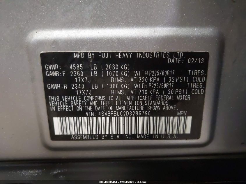 2013 SUBARU OUTBACK 3.6R LIMITED