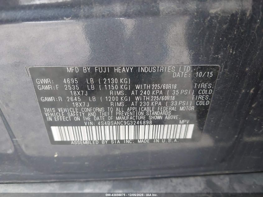 2016 SUBARU OUTBACK 2.5I LIMITED