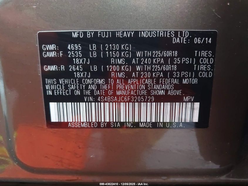 2015 SUBARU OUTBACK 3.6R LIMITED