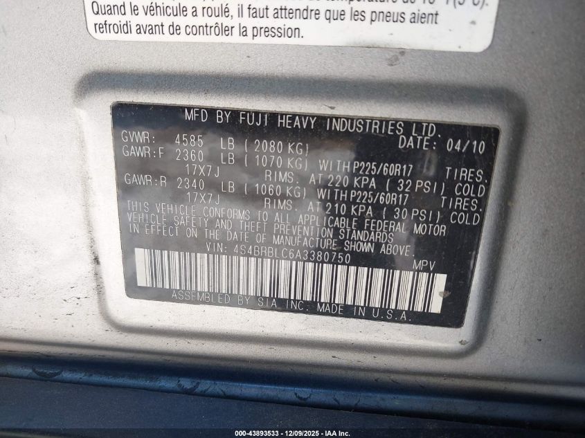2010 SUBARU OUTBACK 3.6R LIMITED