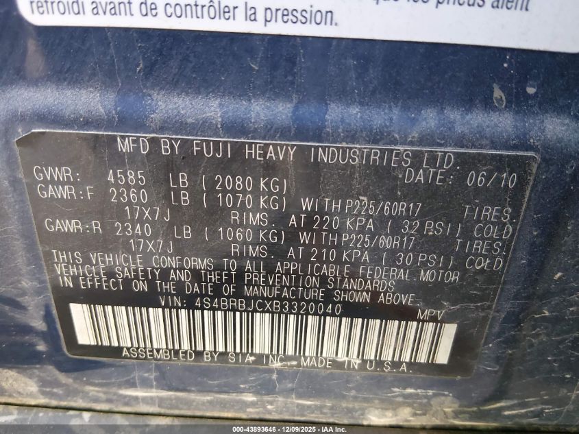 2011 SUBARU OUTBACK 2.5I LIMITED