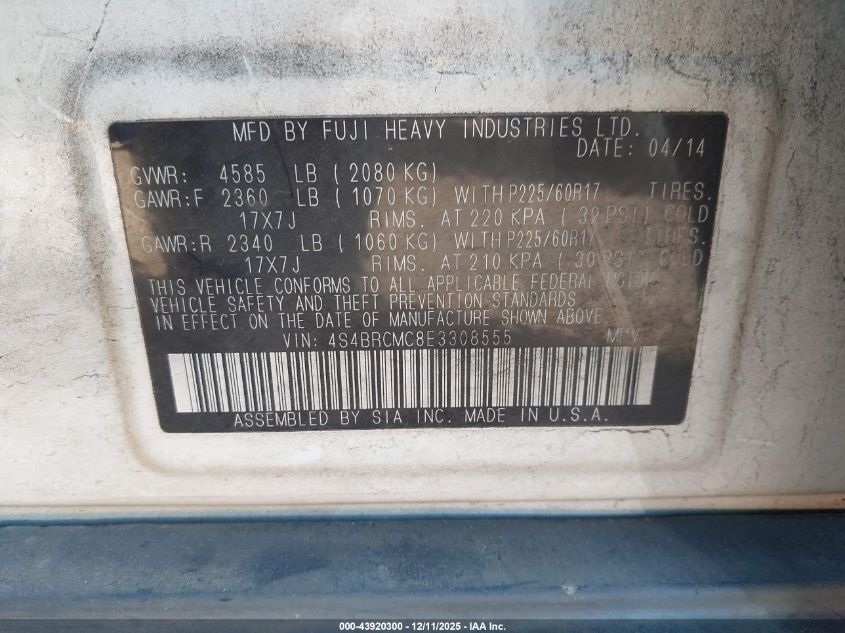 2014 SUBARU OUTBACK 2014 року Бензин, 2.5, Повний привід, vin - 4S4BRCMC8E3308555 з США