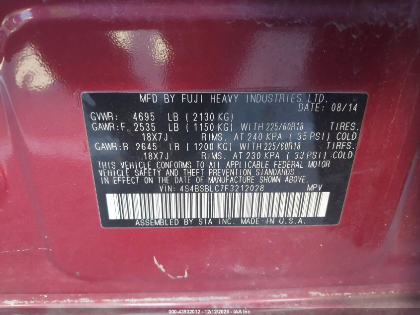 2015 SUBARU OUTBACK 2.5I LIMITED