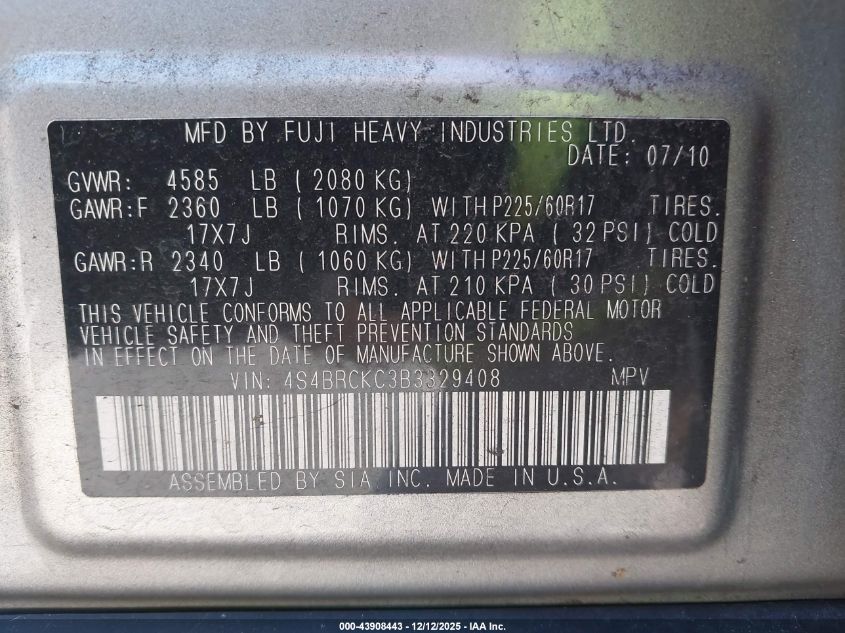2011 SUBARU OUTBACK 2.5I LIMITED