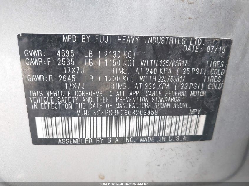 Колір СірийЦиліндри 4Привід Повний привідVIN 4S4BSBFC9G3203859Стан СтаціонарноУшкодження Передня або задня AutoRIA